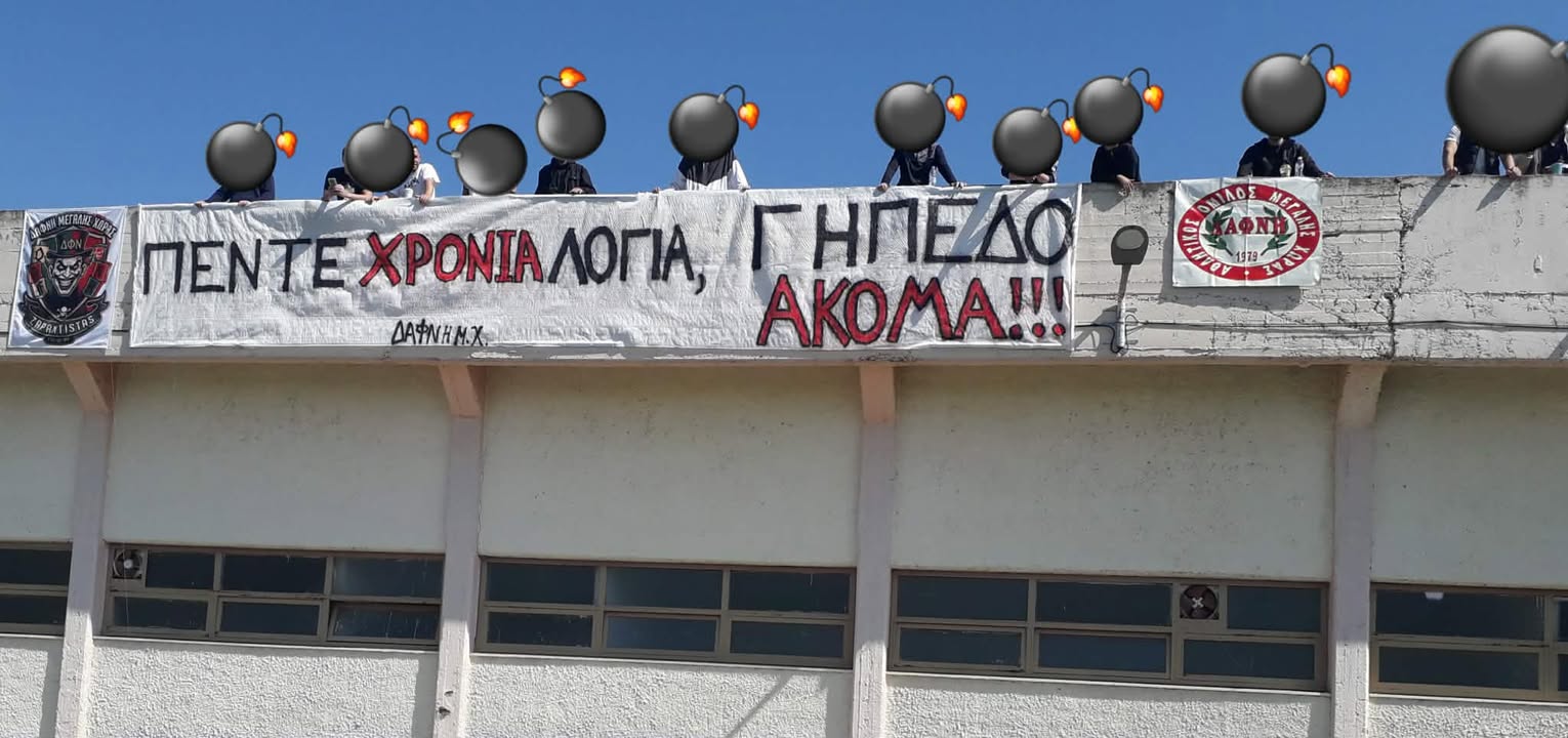 Πάνω σε ένα σημείο που τραβούσε την προσοχή, υπήρχε αναρτημένο ένα πανό με ιδιαίτερα καυστικό μήνυμα: «Πέντε χρόνια λόγια, γήπεδο ακόμα». Η φράση αυτή συμπυκνώνει την αγανάκτησή τους, καθώς εδώ και πέντε χρόνια ακούγονται συνεχώς υποσχέσεις και εξαγγελίες για την αναβάθμιση και την κατασκευή του γηπέδου, χωρίς όμως να υπάρχει ουσιαστικό αποτέλεσμα ή απτή πρόοδος. Η πικρία των φιλάθλων είναι έκδηλη, καθώς βλέπουν την ομάδα τους να μην μπορεί να διεκδικήσει το πλεονέκτημα της έδρας και να γιορτάζει τις επιτυχίες της μακριά από τους δικούς της φιλάθλους. Η δυσχερής αυτή κατάσταση που αντιμετωπίζει η Δάφνη Μεγάλης Χώρας δεν αφορά μόνο την αθλητική της δραστηριότητα, αλλά αποτελεί και ένα ευρύτερο κοινωνικό ζήτημα για την περιοχή. Το αίτημα για την αναβάθμιση και την κατασκευή ενός λειτουργικού γηπέδου στη Μεγάλη Χώρα δεν είναι κάτι καινούργιο, αλλά αποτελεί ένα πάγιο και διαχρονικό αίτημα της τοπικής κοινωνίας.