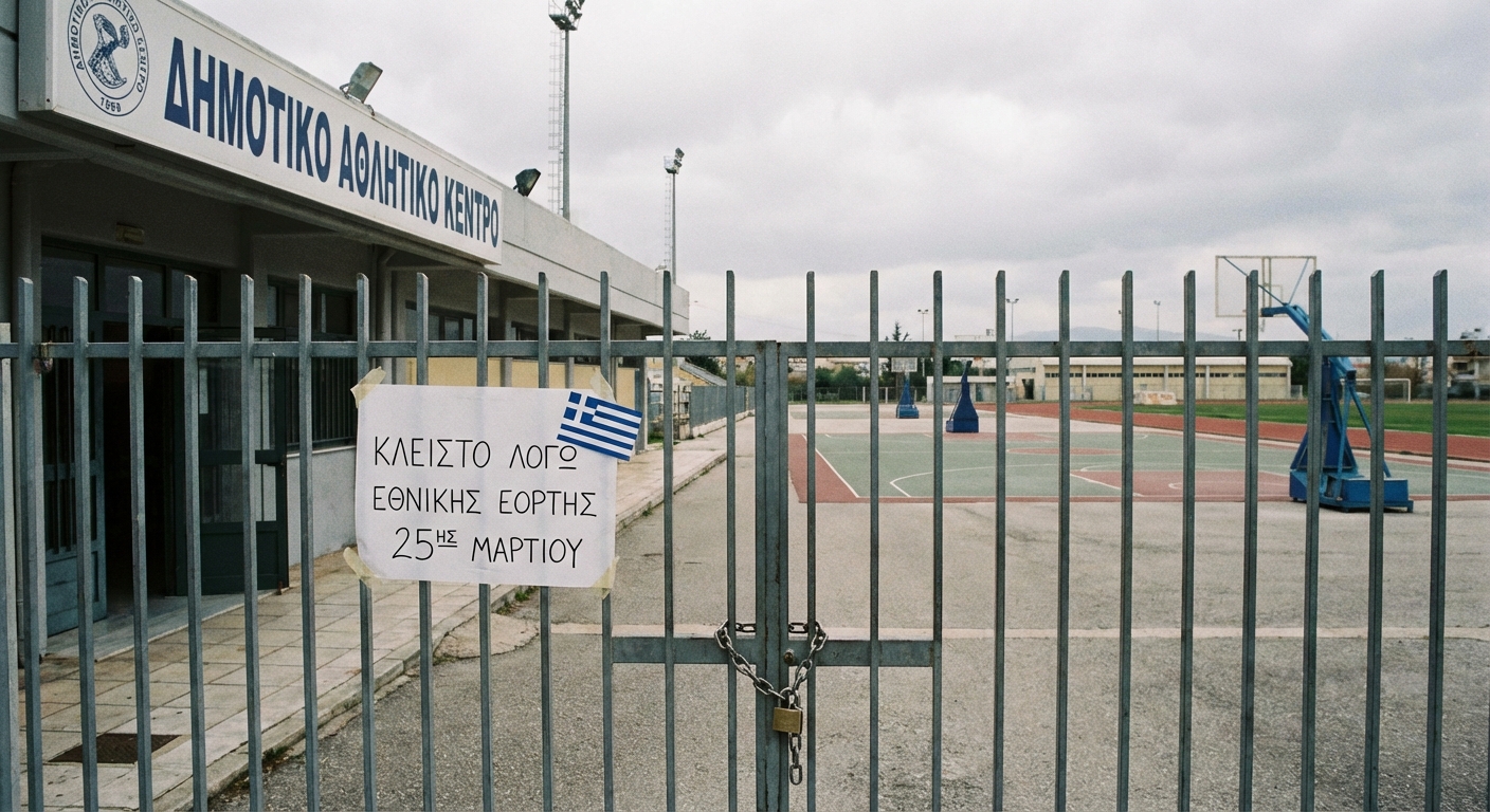 Αγαπητοί συμπολίτες, σας ενημερώνουμε με ιδιαίτερη σαφήνεια για την προγραμματισμένη διακοπή λειτουργίας των αθλητικών κέντρων που ανήκουν στον Δήμο μας. Συγκεκριμένα, την Τετάρτη 25 Μαρτίου 2026, ημέρα που έχει οριστεί ως επίσημη αργία, όλες οι αθλητικές εγκαταστάσεις του Δήμου θα παραμείνουν κλειστές. Η απόφαση αυτή λαμβάνεται για να τιμήσουμε την εθνική αυτή επέτειο, τηρώντας πιστά το καθεστώς που διέπει τις επίσημες αργίες στη χώρα μας. Η προσωρινή αυτή αναστολή των δραστηριοτήτων στις αθλητικές μας υποδομές είναι μια τυπική διαδικασία που ακολουθείται σε τέτοιες ημερομηνίες. Κατόπιν τούτου, καλούνται όλοι οι δημότες, καθώς και οι αθλητικοί σύλλογοι και οι χρήστες των εγκαταστάσεων, να λάβουν υπόψη τους αυτήν την πληροφορία για την καλύτερη δυνατή οργάνωση και προγραμματισμό των αθλητικών τους δραστηριοτήτων. Η πρόβλεψη για αυτήν την ημέρα είναι απαραίτητη, ώστε να αποφευχθούν τυχόν άσκοπες μετακινήσεις ή απογοητεύσεις κατά την άφιξή σας στις αθλητικές εγκαταστάσεις.